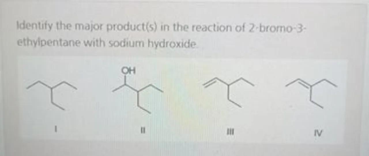 Identify the major product(s) in the reaction of 2 -bromo-3ethyipentane with sodium hydroxide.