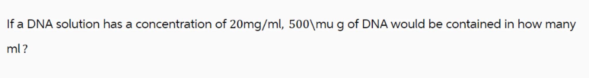 If a DNA solution has a concentration of of DNA would be contained in how many