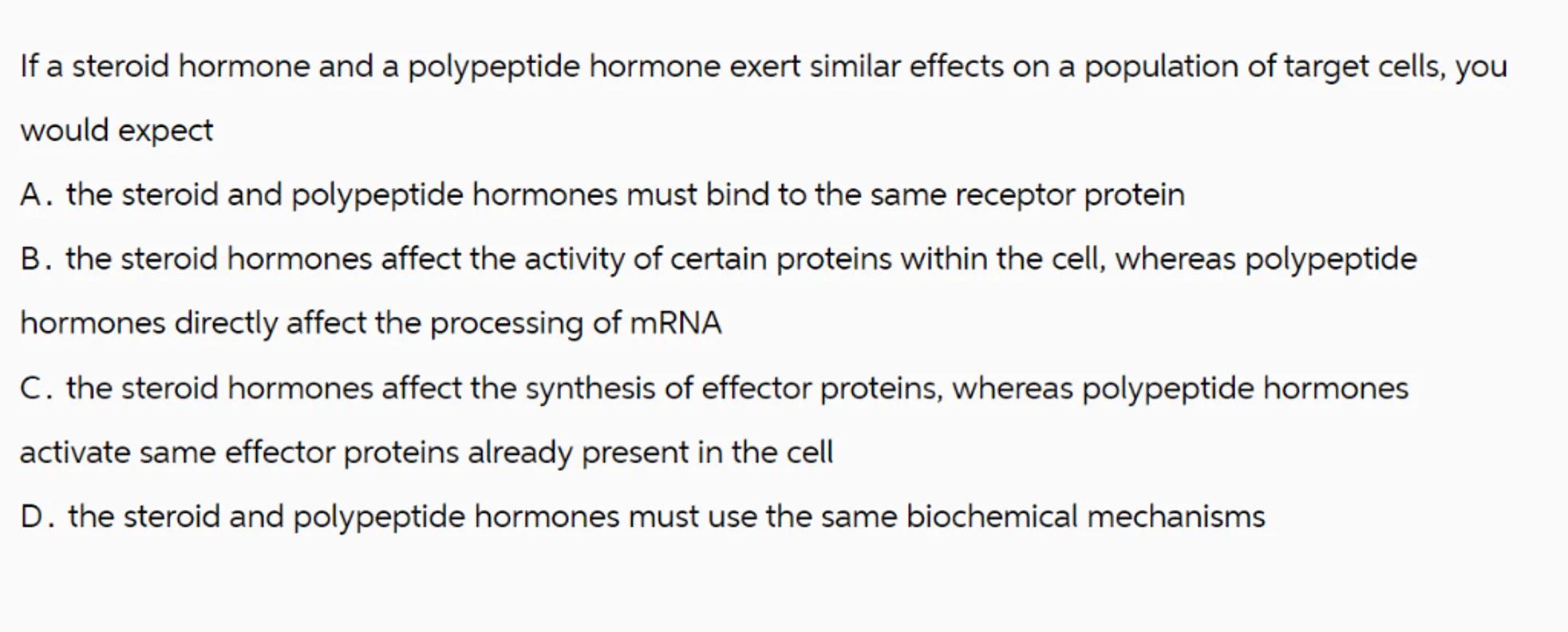 If a steroid hormone and a polypeptide hormone exert similar effects on a population of target cells, you would expect