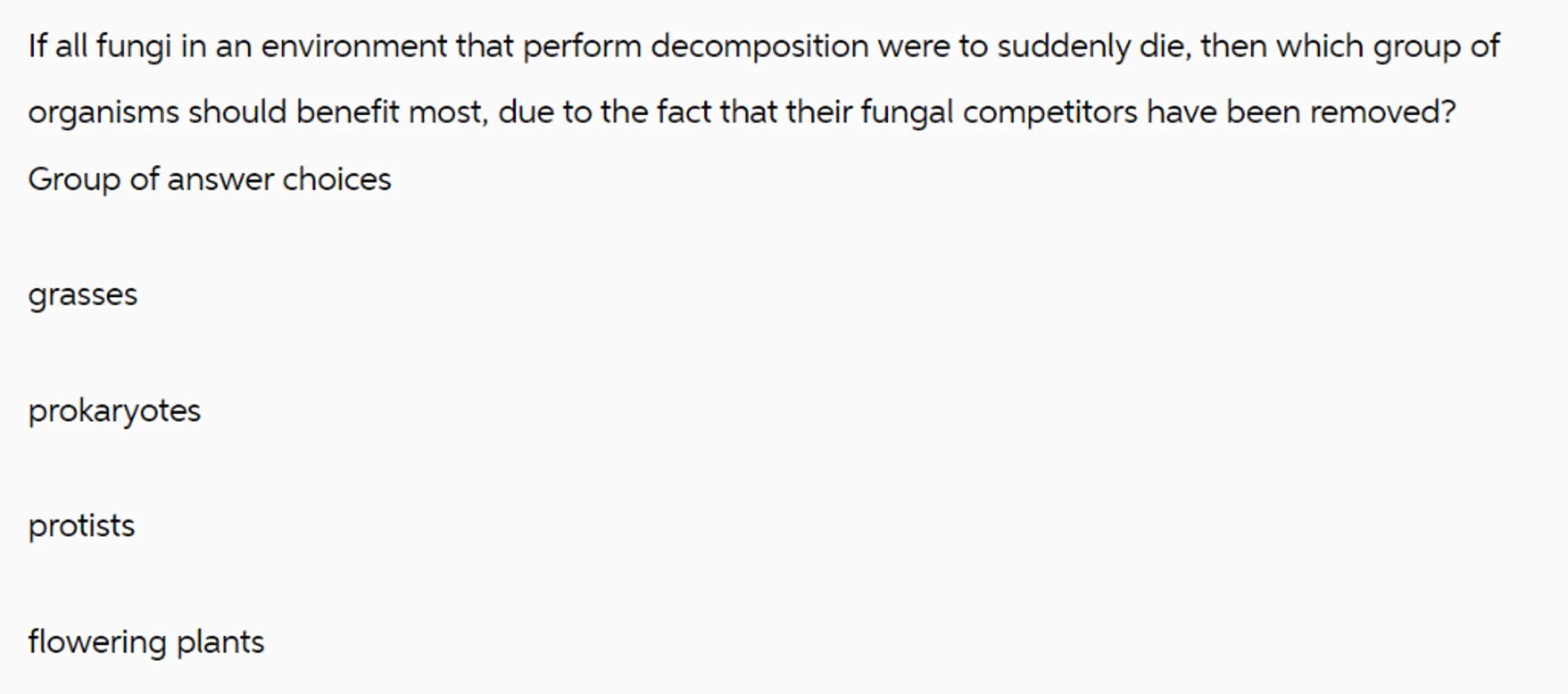 If all fungi in an environment that perform decomposition were to suddenly die, then which group of organisms should benefit most, due to the fact that their fungal competitors have been removed?