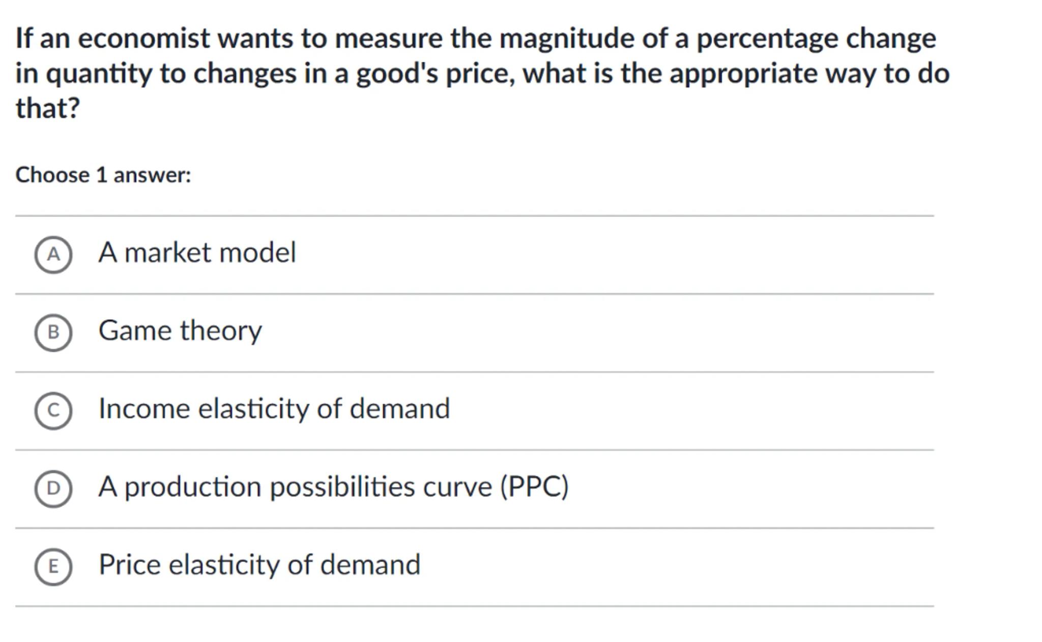 If an economist wants to measure the magnitude of a percentage change in quantity to changes in a good's price, what is the appropriate way to do that?