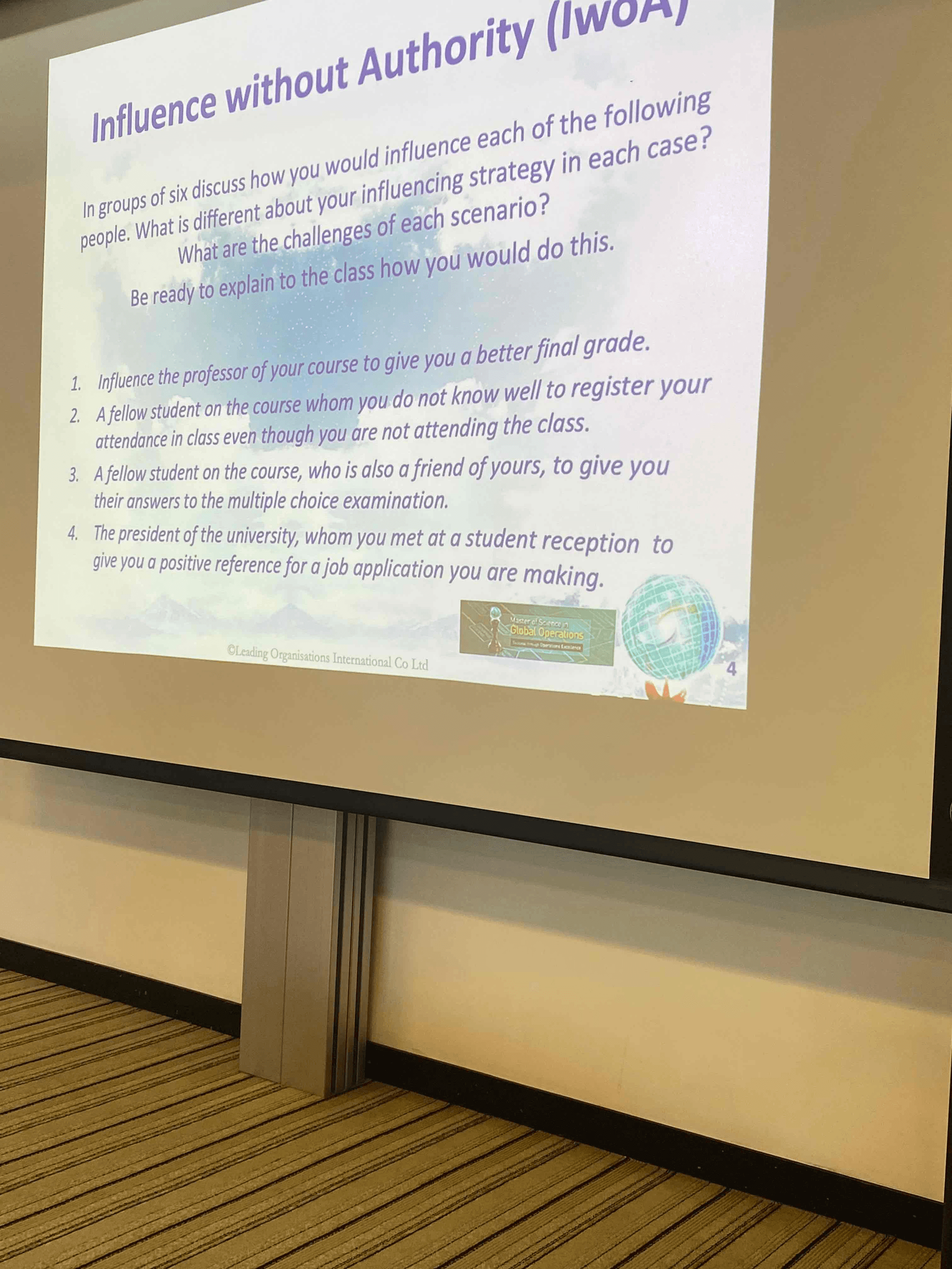 people. In groups What of six is discuss different how about your influencing scenario? strategy in