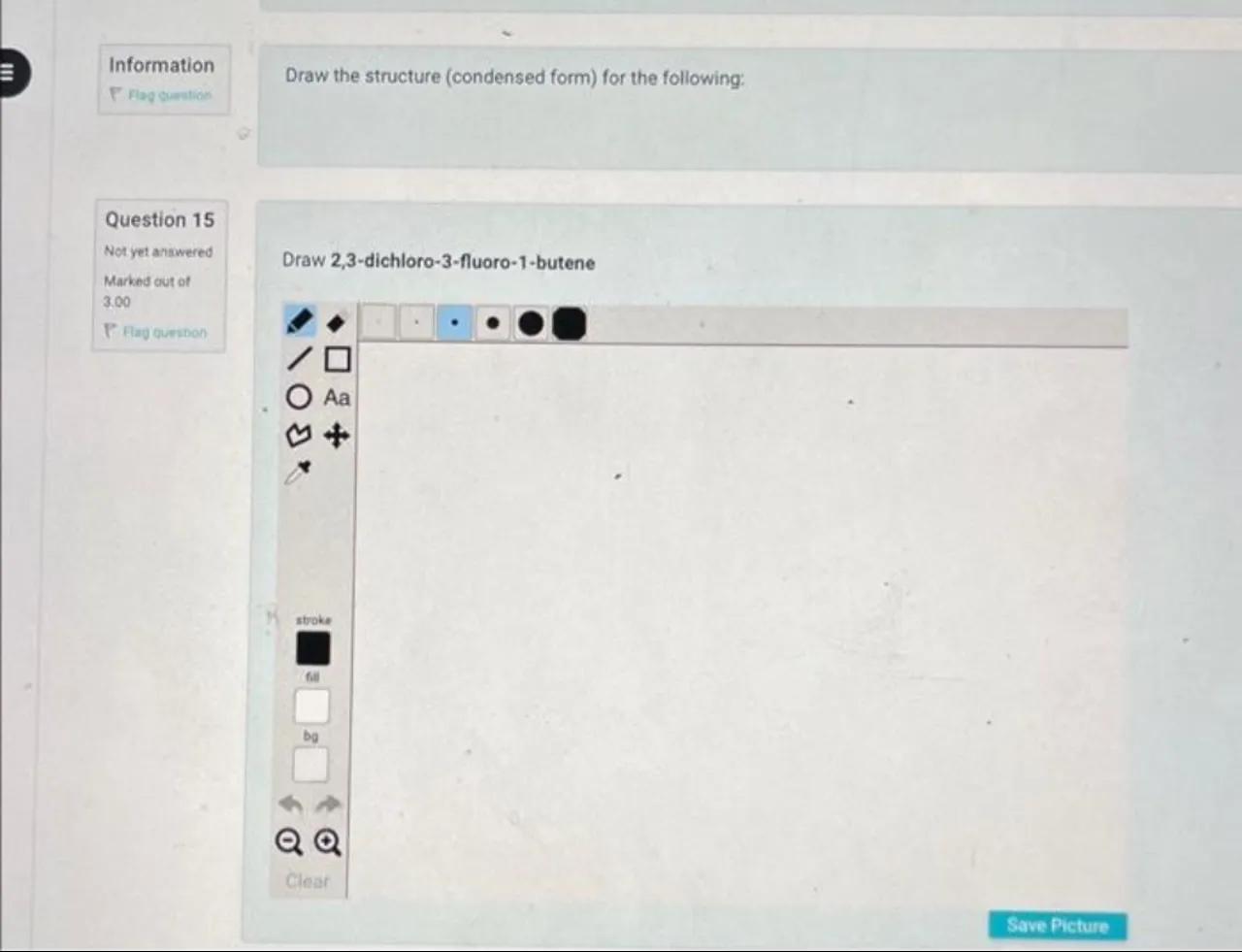 Draw 2,3 -dichloro-3-fluoro-1-butene