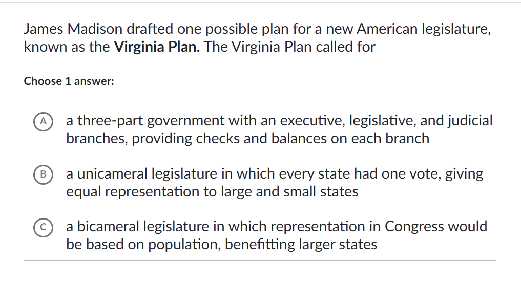 known as the Virginia Plan. The Virginia Plan called for