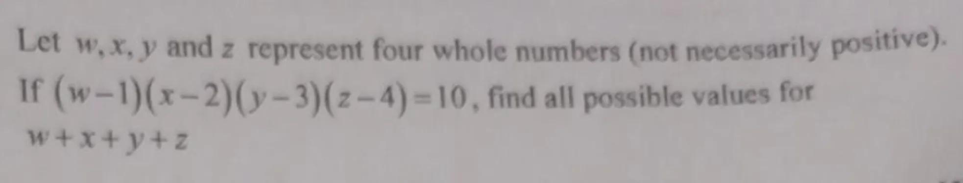Let and represent four whole numbers (not necessarily positive). If , find all possible values for