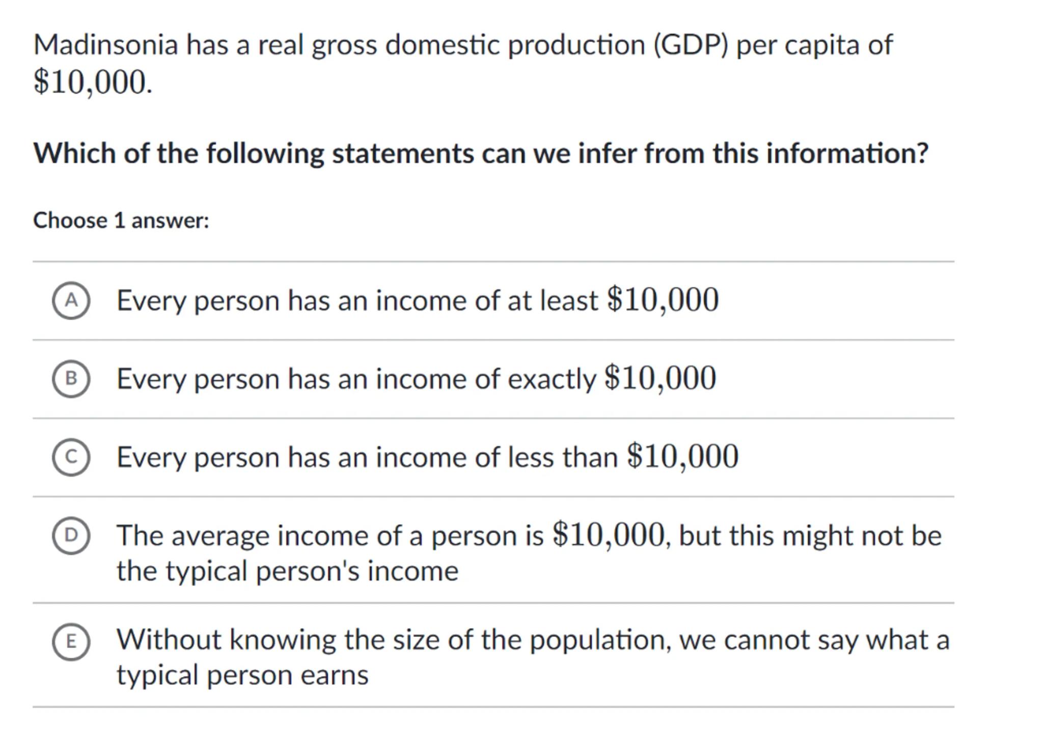 (E) Without knowing the size of the population, we cannot say what a typical person earns