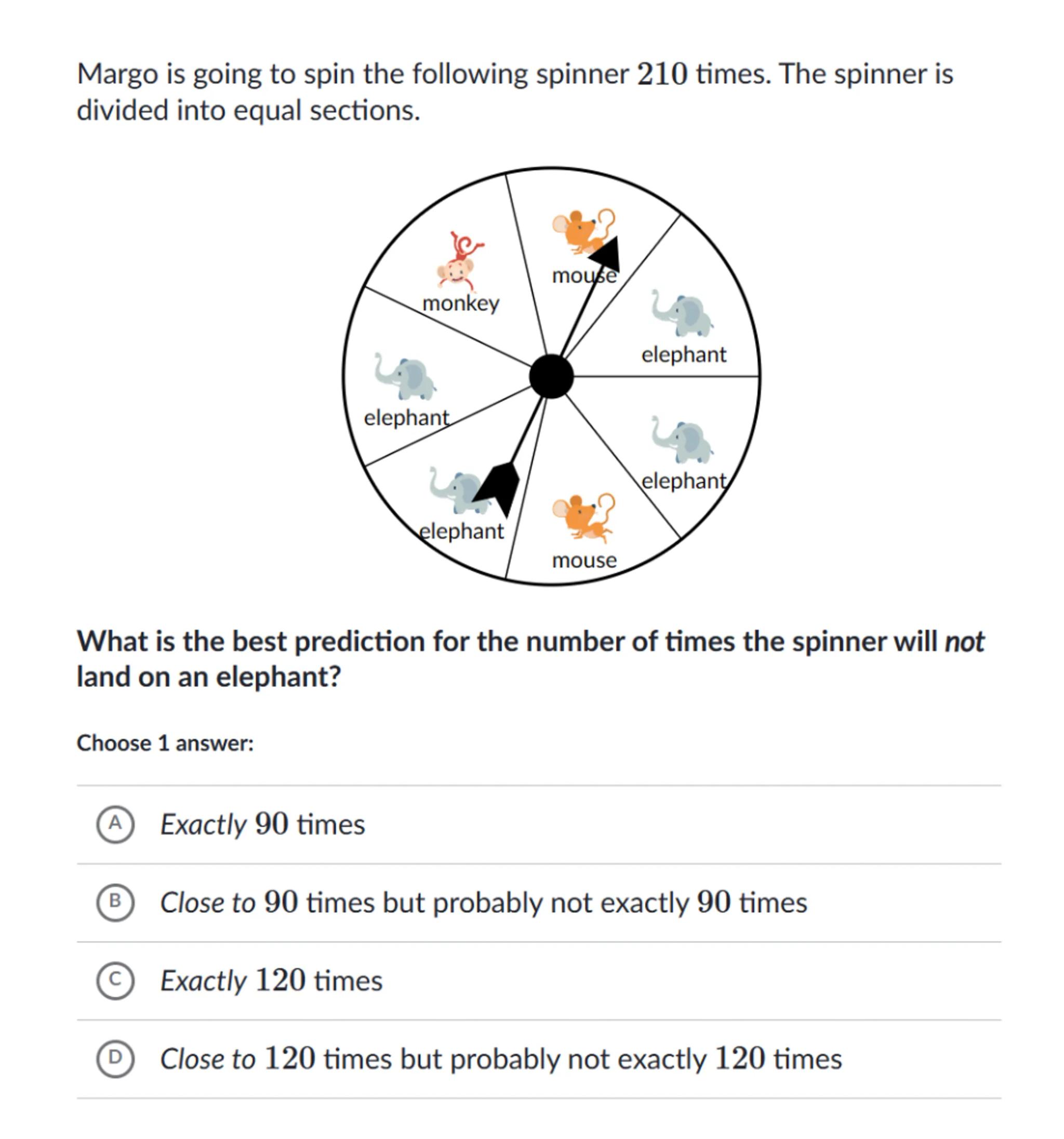 What is the best prediction for the number of times the spinner will not land on an elephant?