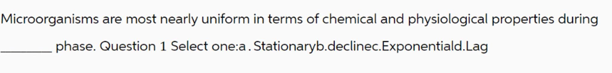 phase. Question 1 Select one:a. Stationaryb.declinec.Exponentiald.Lag