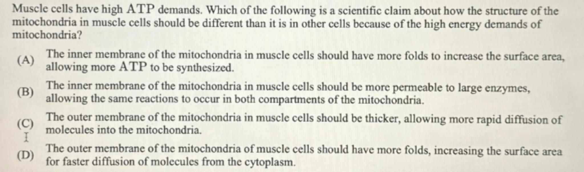 Muscle cells have high ATP demands. Which of the following is a scientific claim about how the structure of the mitochondria in muscle cells should be different than it is in other cells because of the high energy demands of mitochondria?