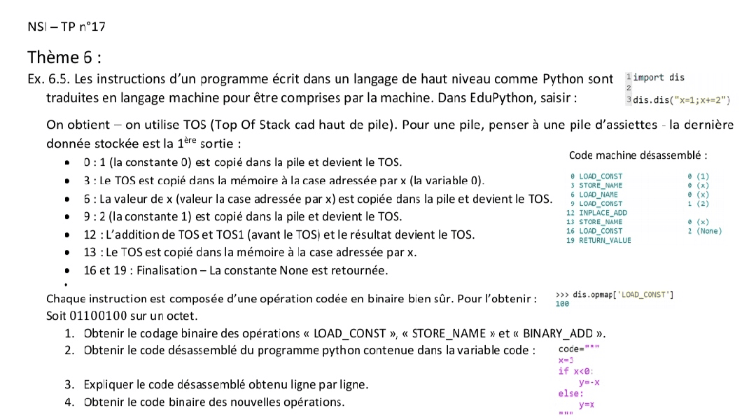 Ex. 6.5. Les instructions d'un programme écrit dans un langage de haut niveau comme Python sont