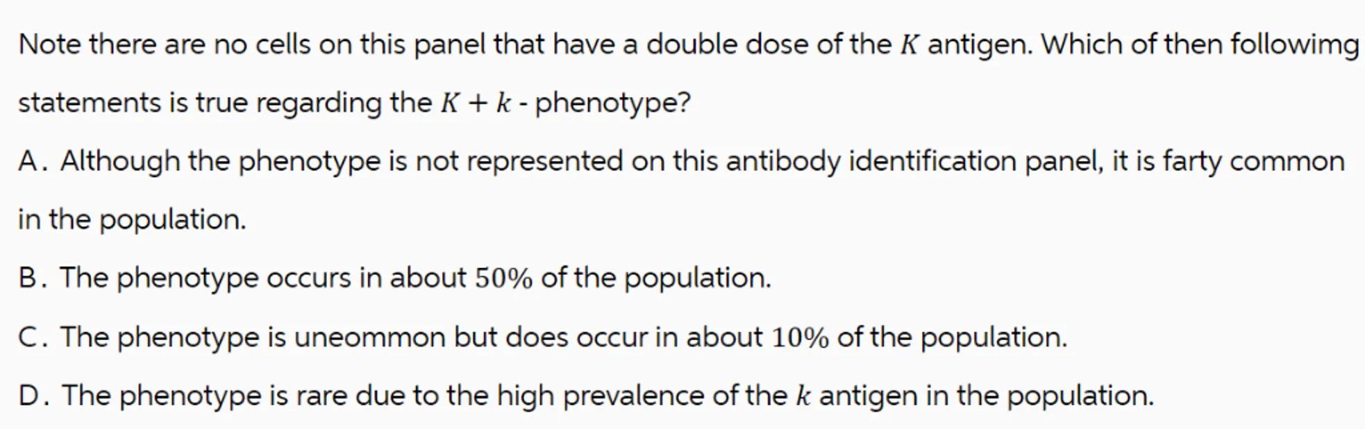 A. Although the phenotype is not represented on this antibody identification panel, it is farty common in the population.