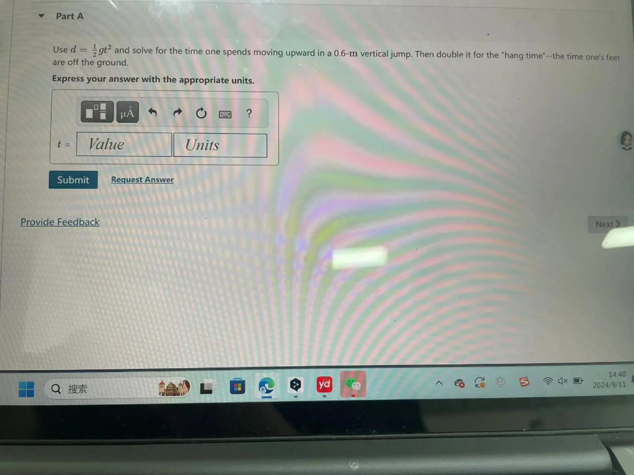 Use  and solve for the time one spends moving upward in a  vertical jump. Then double it for the "hang time" --the time one's feet are off the ground.