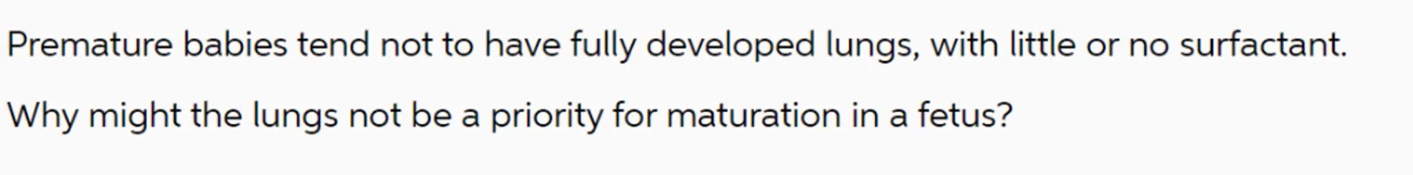 Premature babies tend not to have fully developed lungs, with little or no surfactant. Why might the lungs not be a priority for maturation in a fetus?