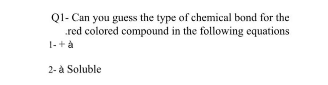 Q1- Can you guess the type of chemical bond for the .red colored compound in the following equations à