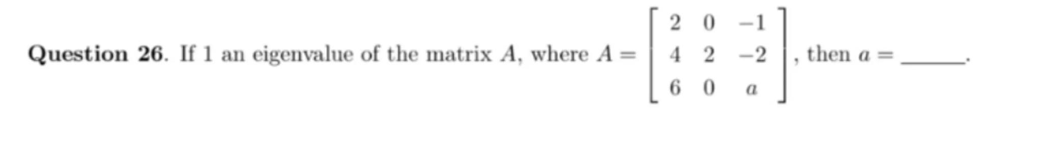 Question 26. If 1 an eigenvalue of the matrix , where , then