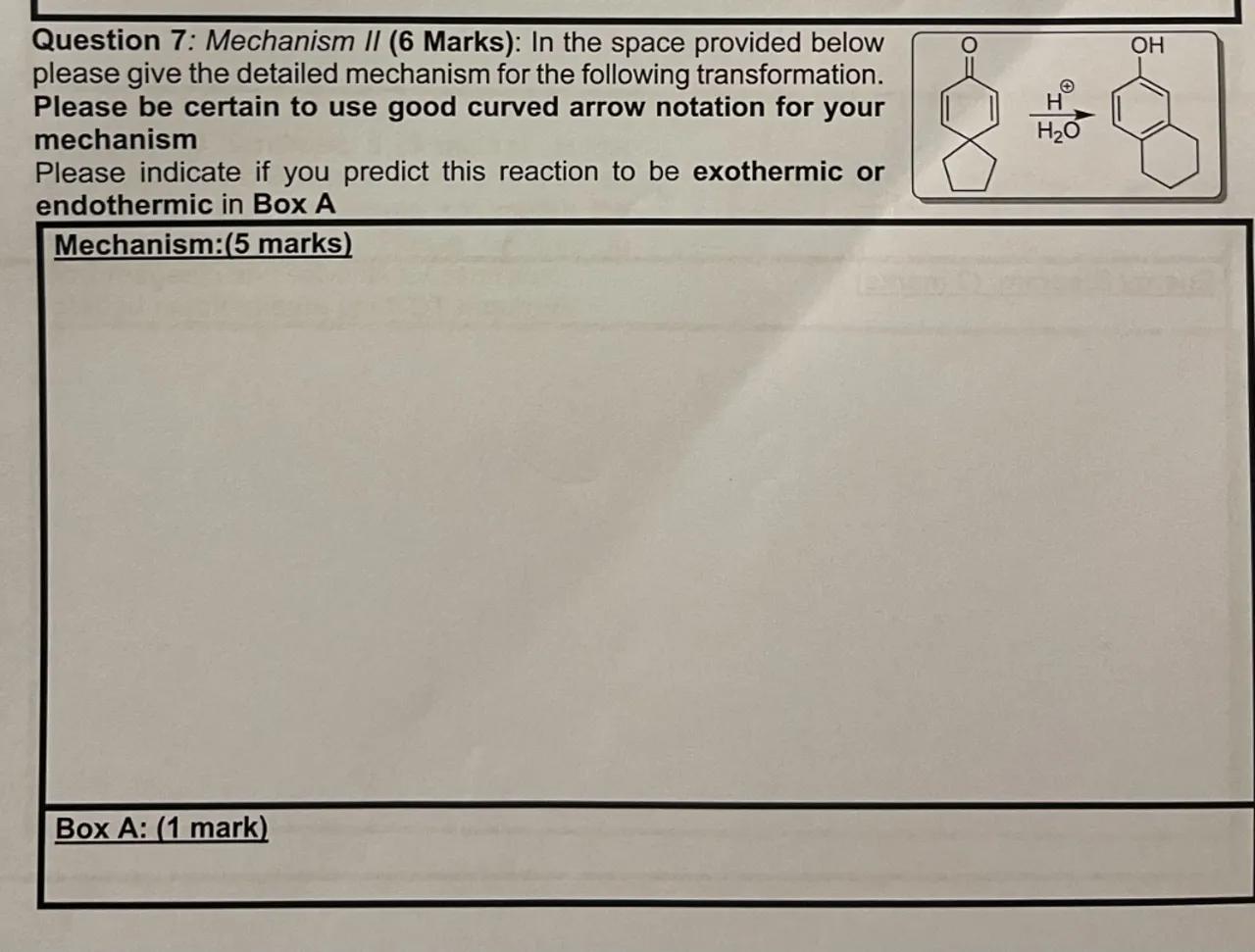 Question 7: Mechanism II ( 6 Marks): In the space provided below please give the detailed mechanism for the following transformation. Please be certain to use good curved arrow notation for your mechanism