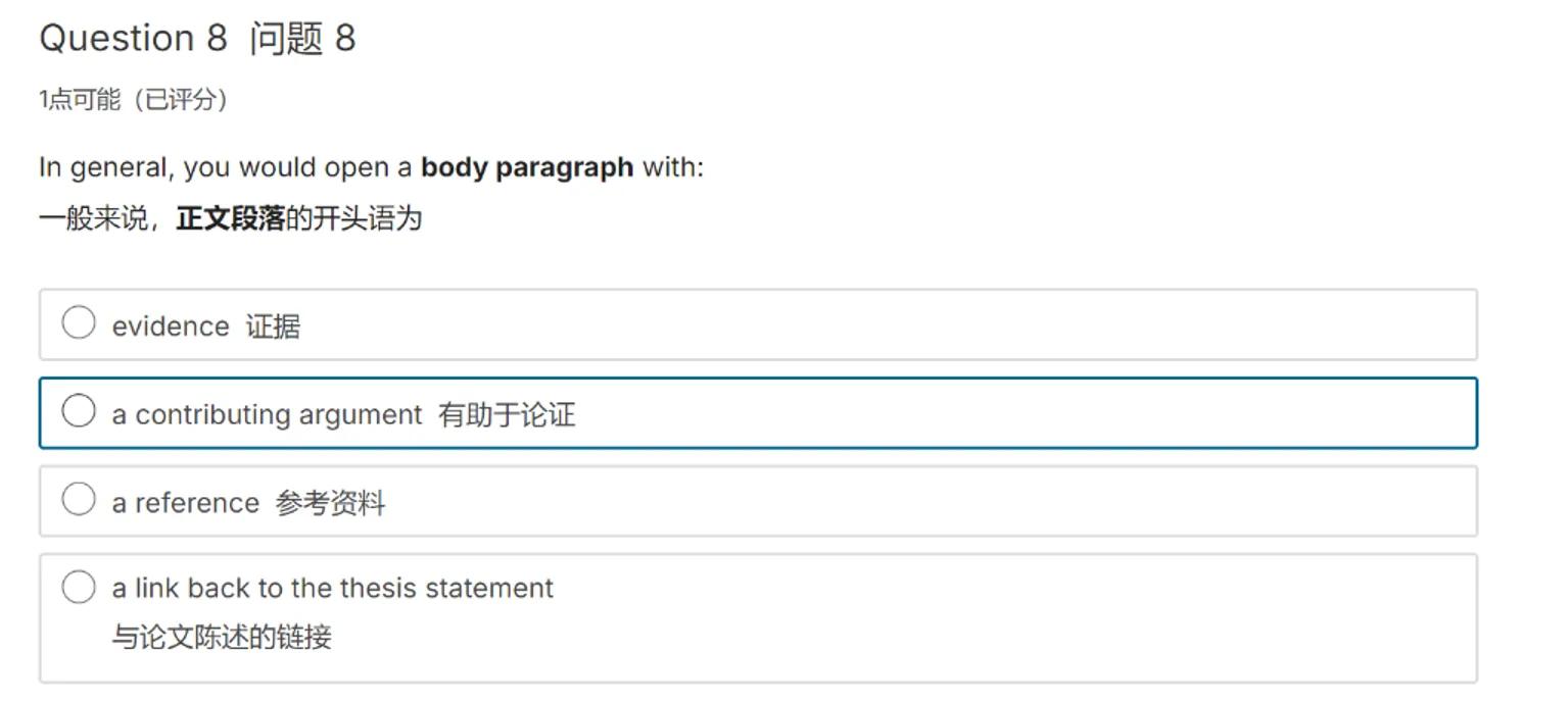 2. A contributing argument (有助于论证): This option is also valid. Opening with a contributing argument can help set the stage for the evidence that follows.