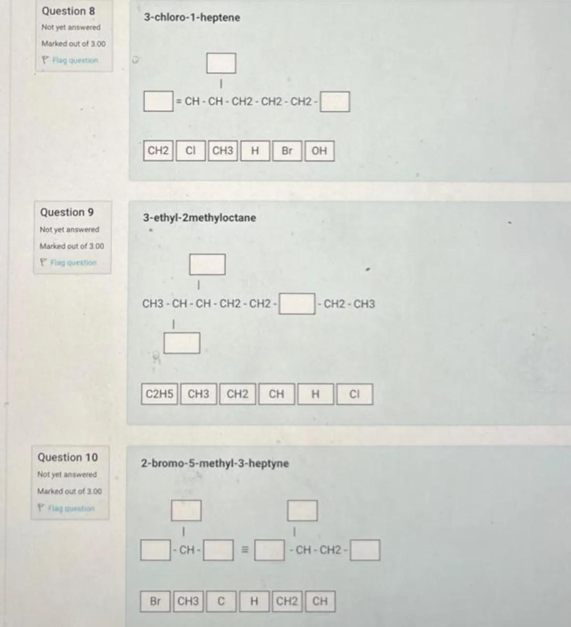 Question 8 Not yet answered. Marked out of 3.00 P Riag question