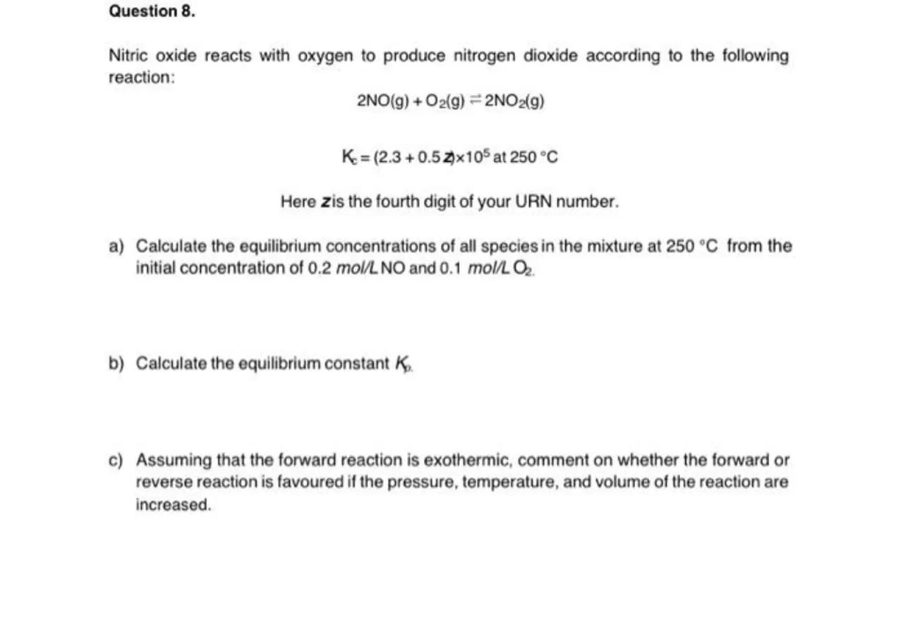 c) Assuming that the forward reaction is exothermic, comment on whether the forward or reverse reaction is favoured if the pressure, temperature, and volume of the reaction are increased.