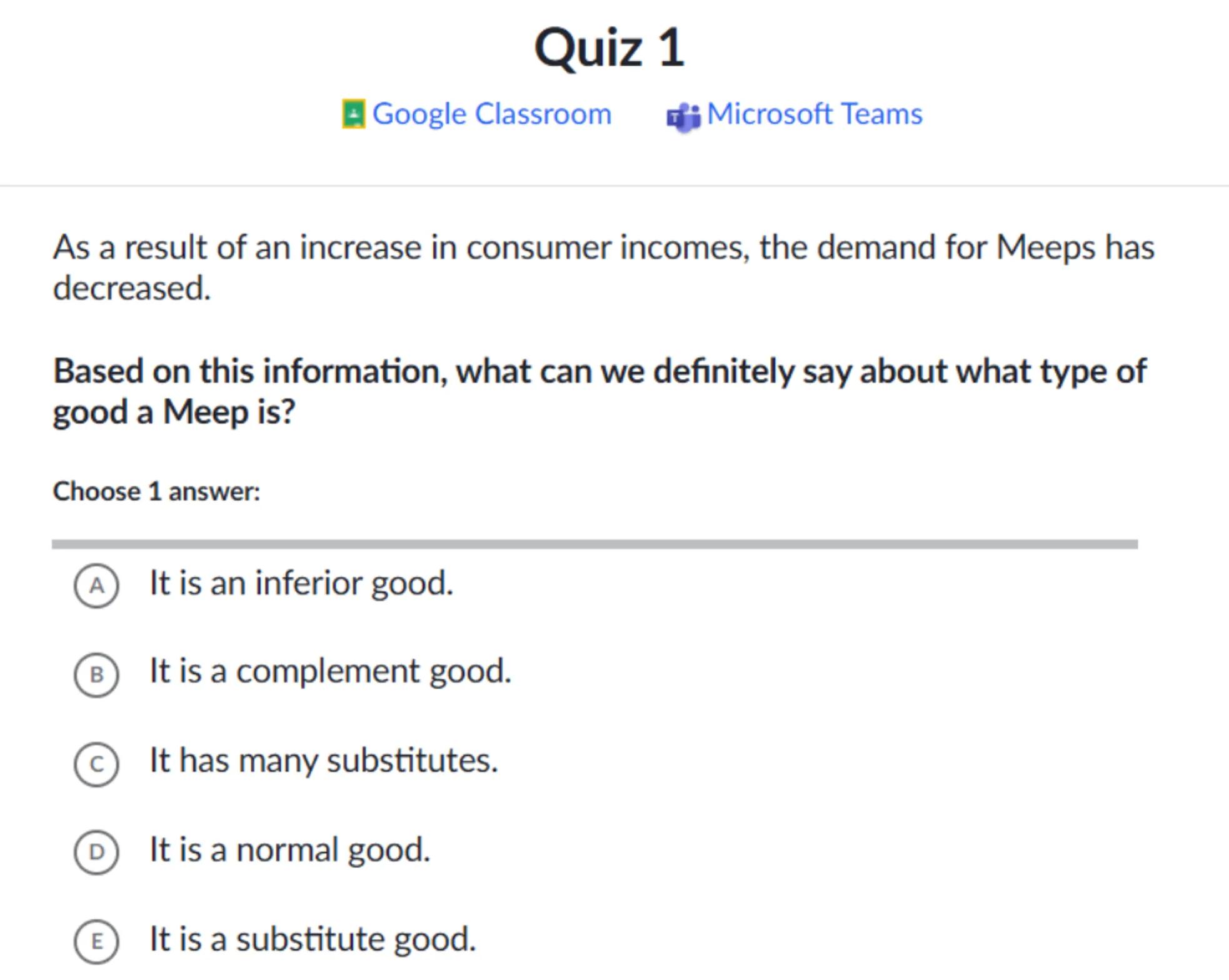 Based on this information, what can we definitely say about what type of good a Meep is?