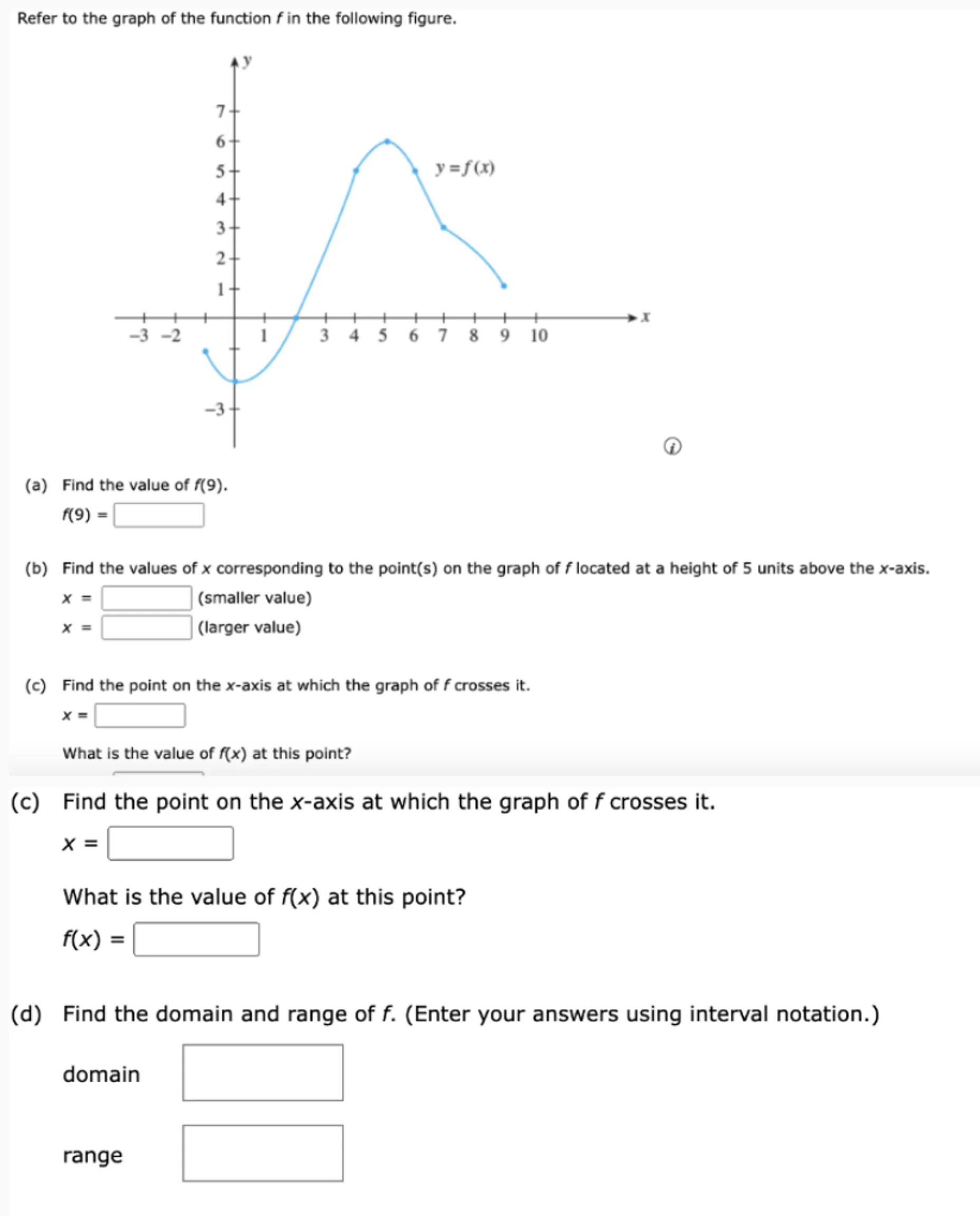 (d) Find the domain and range of . (Enter your answers using interval notation.) domain