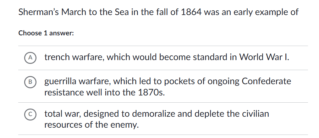 Sherman's March to the Sea in the fall of 1864 was an early example of