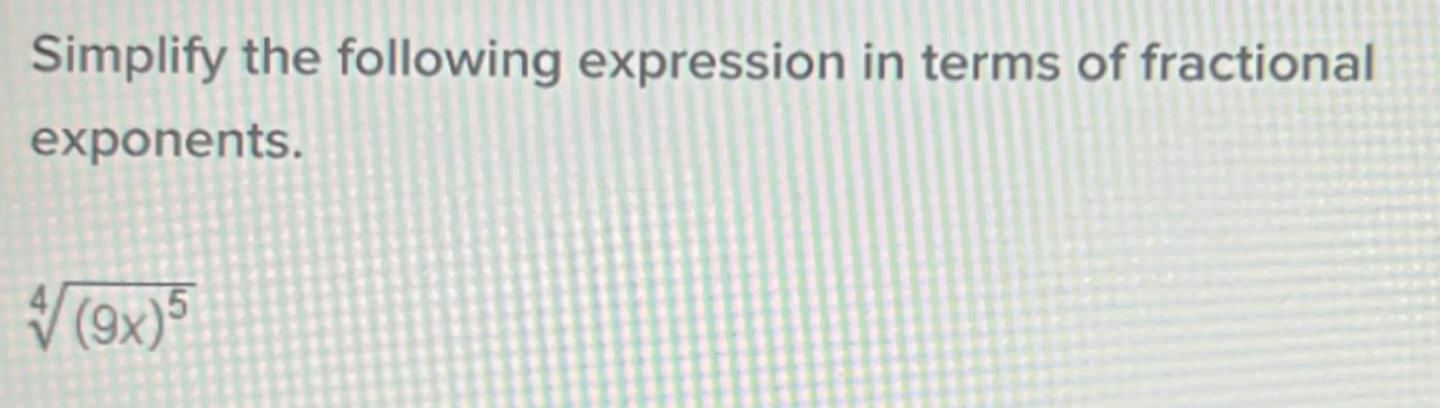 Simplify the following expression in terms of fractional exponents.