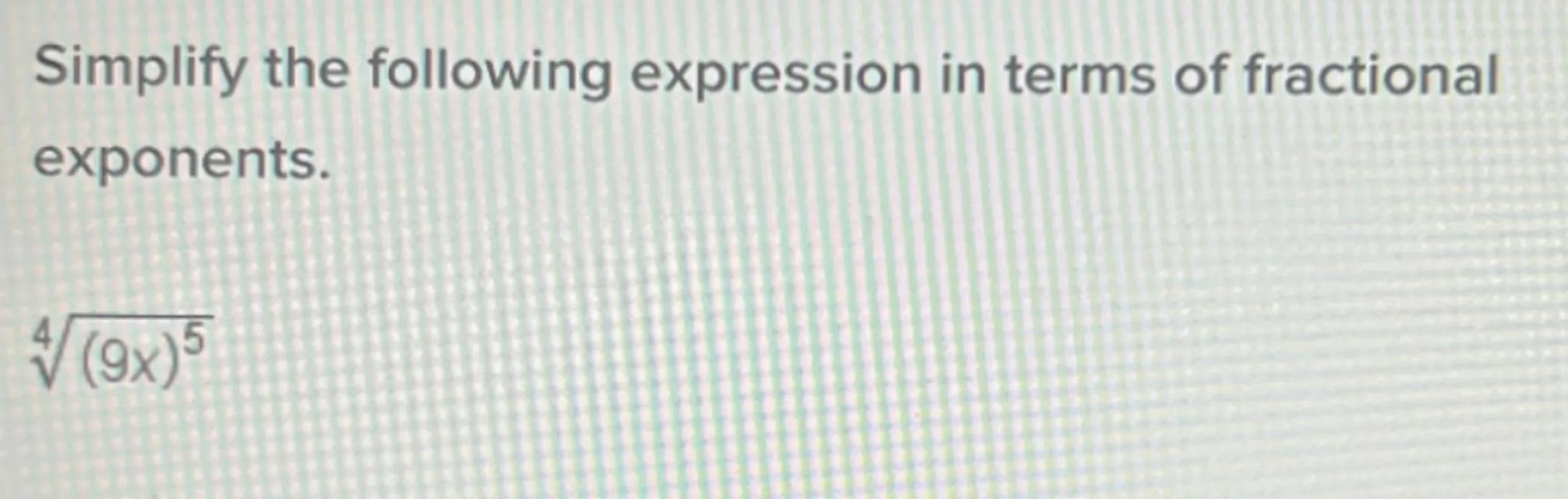 Simplify the following expression in terms of fractional exponents.
