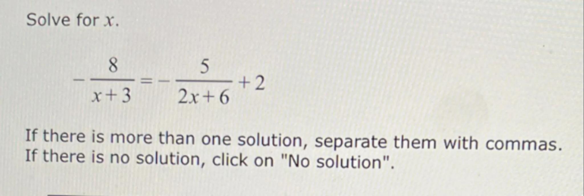 If there is more than one solution, separate them with commas. If there is no solution, click on "No solution".