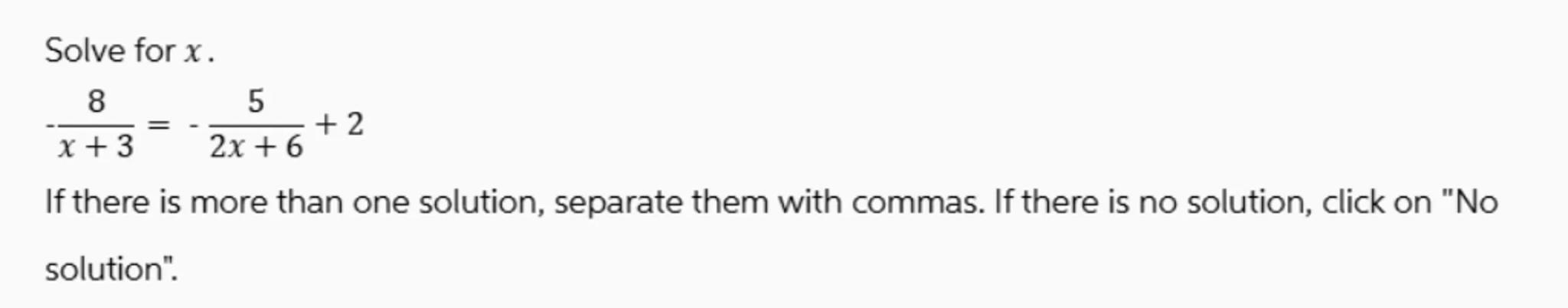 If there is more than one solution, separate them with commas. If there is no solution, click on "No solution".