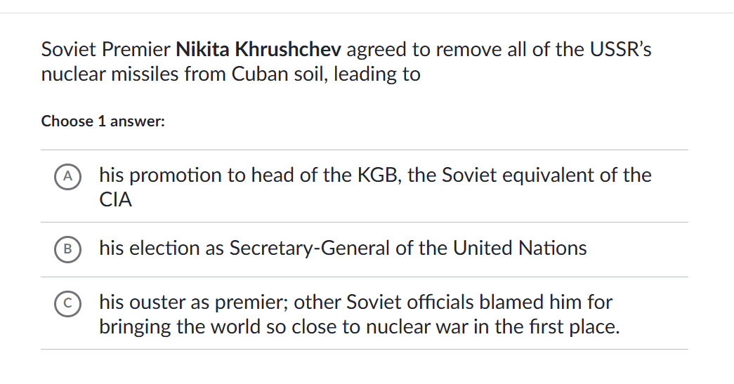 Soviet Premier Nikita Khrushchev agreed to remove all of the USSR's