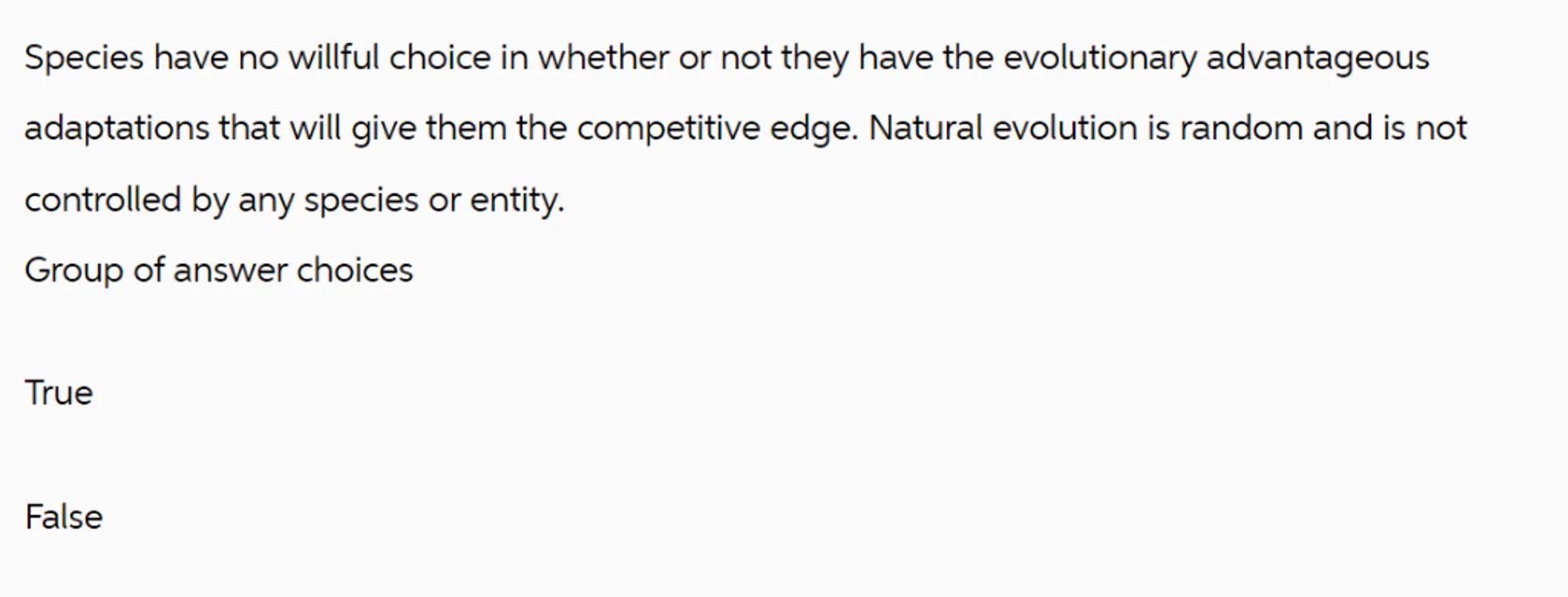 Species have no willful choice in whether or not they have the evolutionary advantageous adaptations that will give them the competitive edge. Natural evolution is random and is not controlled by any species or entity.