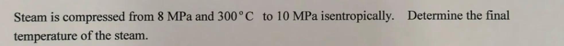 Steam is compressed from and to isentropically. Determine the final temperature of the steam.