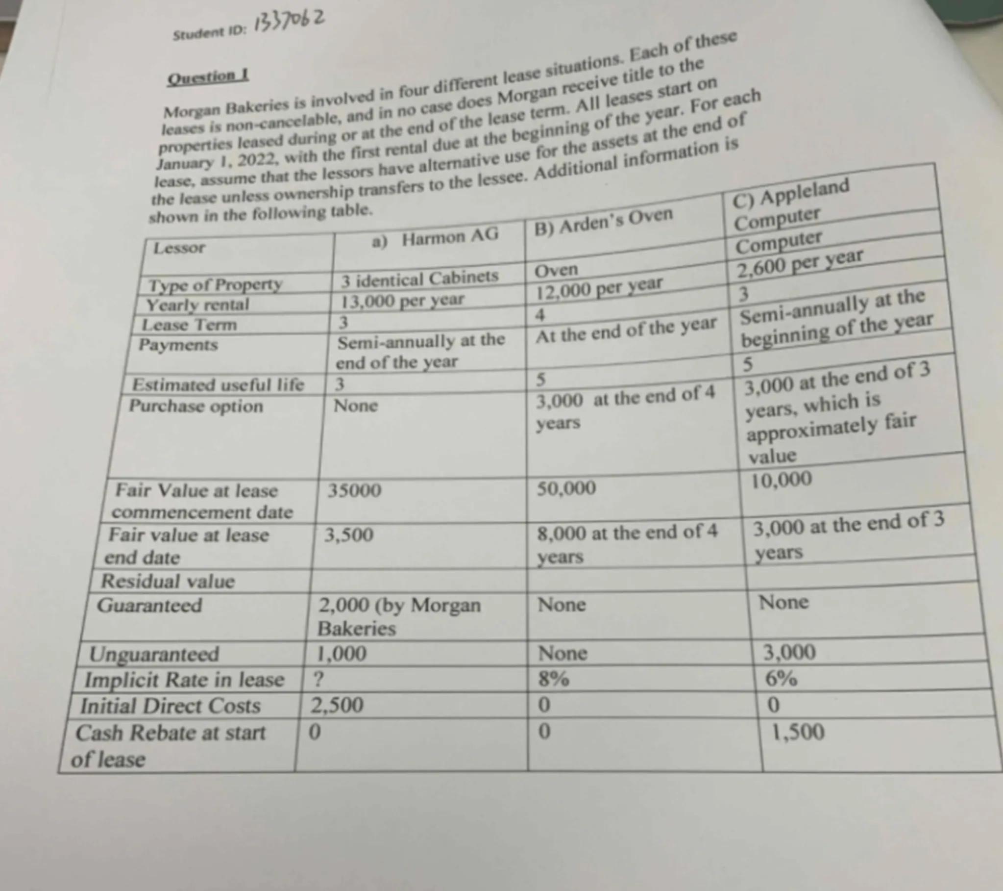 It looks like you have a question related to a lease situation involving Morgan Bakeries. However, I need more specific details about the lease terms or the table mentioned in your question to help you effectively. Could you please provide the information from the table or clarify what you need assistance with?Not the question you are looking for? Ask here!