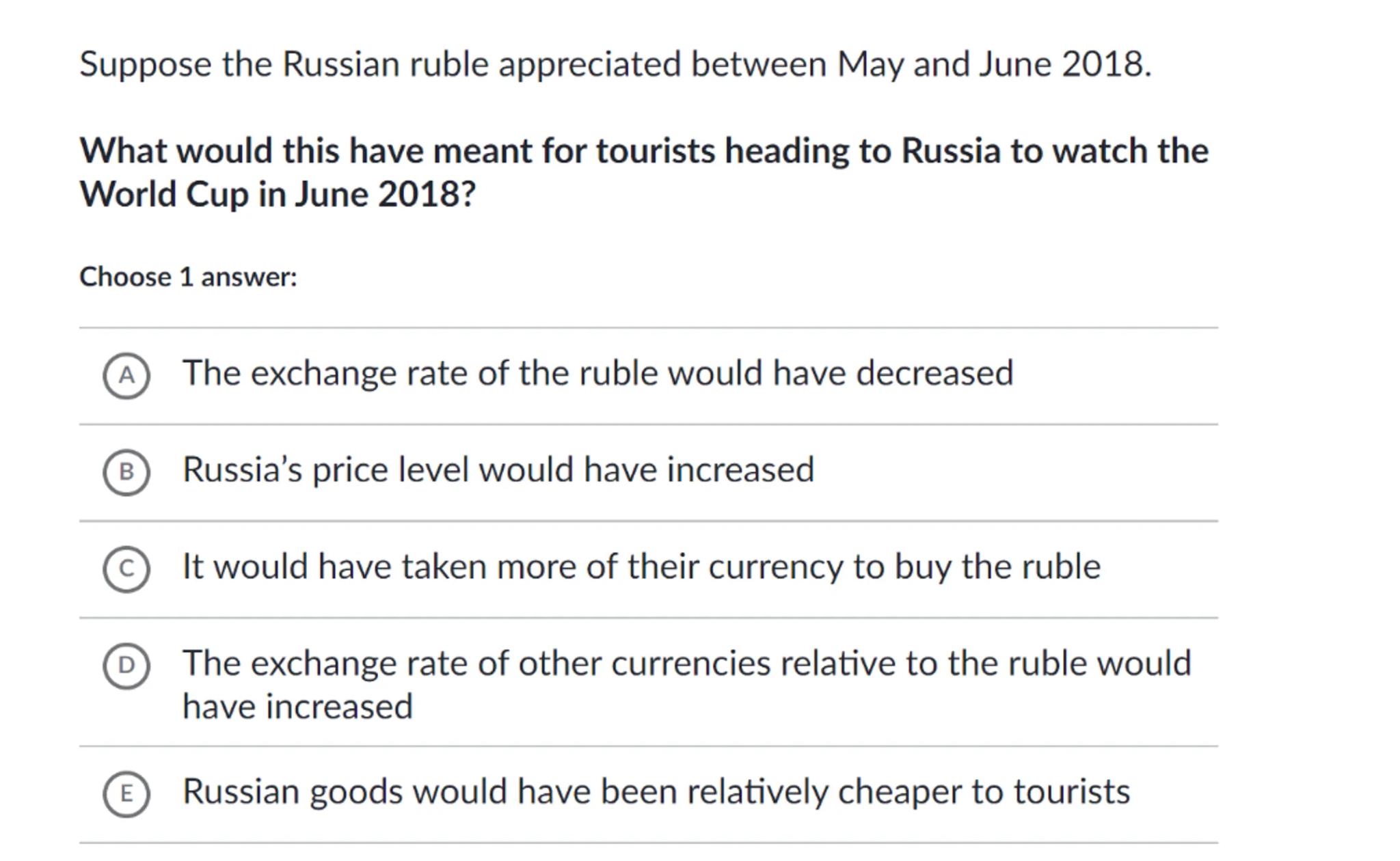 (D) The exchange rate of other currencies relative to the ruble would have increased