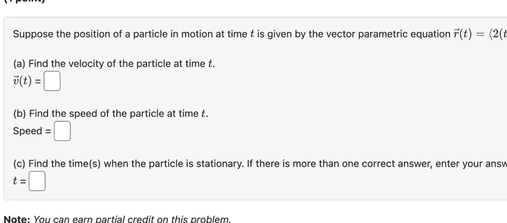 Suppose the position of a particle in motion at time is given by the vector parametric equation