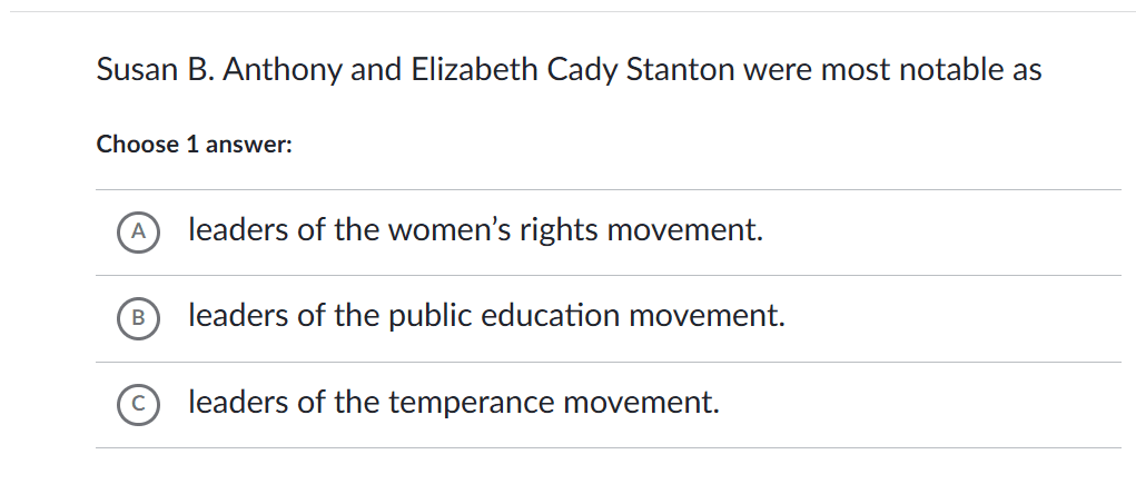 Susan B. Anthony and Elizabeth Cady Stanton were most notable as