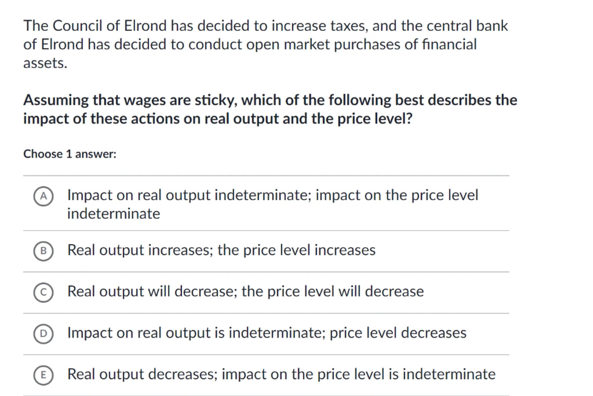 (A) Impact on real output indeterminate; impact on the price level indeterminate