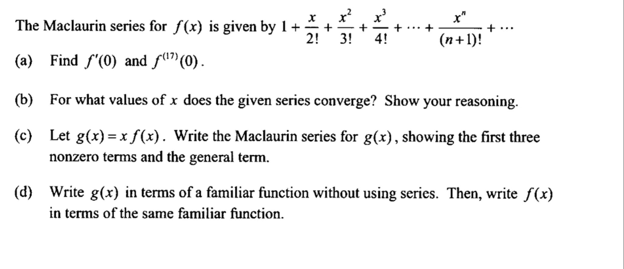 (c) Let . Write the Maclaurin series for , showing the first three nonzero terms and the general term.