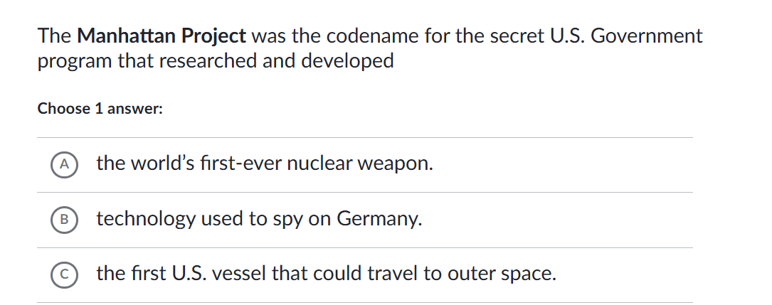 The Manhattan Project was the codename for the secret U.S. Government