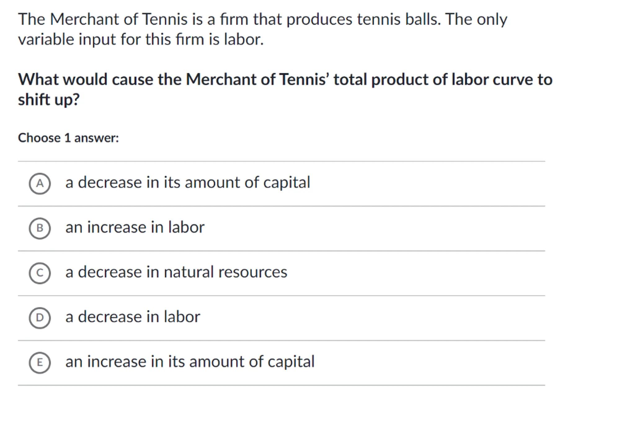 The Merchant of Tennis is a firm that produces tennis balls. The only variable input for this firm is labor.