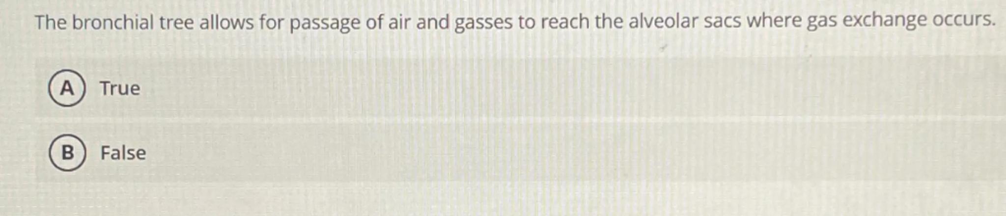 The bronchial tree allows for passage of air and gasses to reach the alveolar sacs where gas exchange occurs.