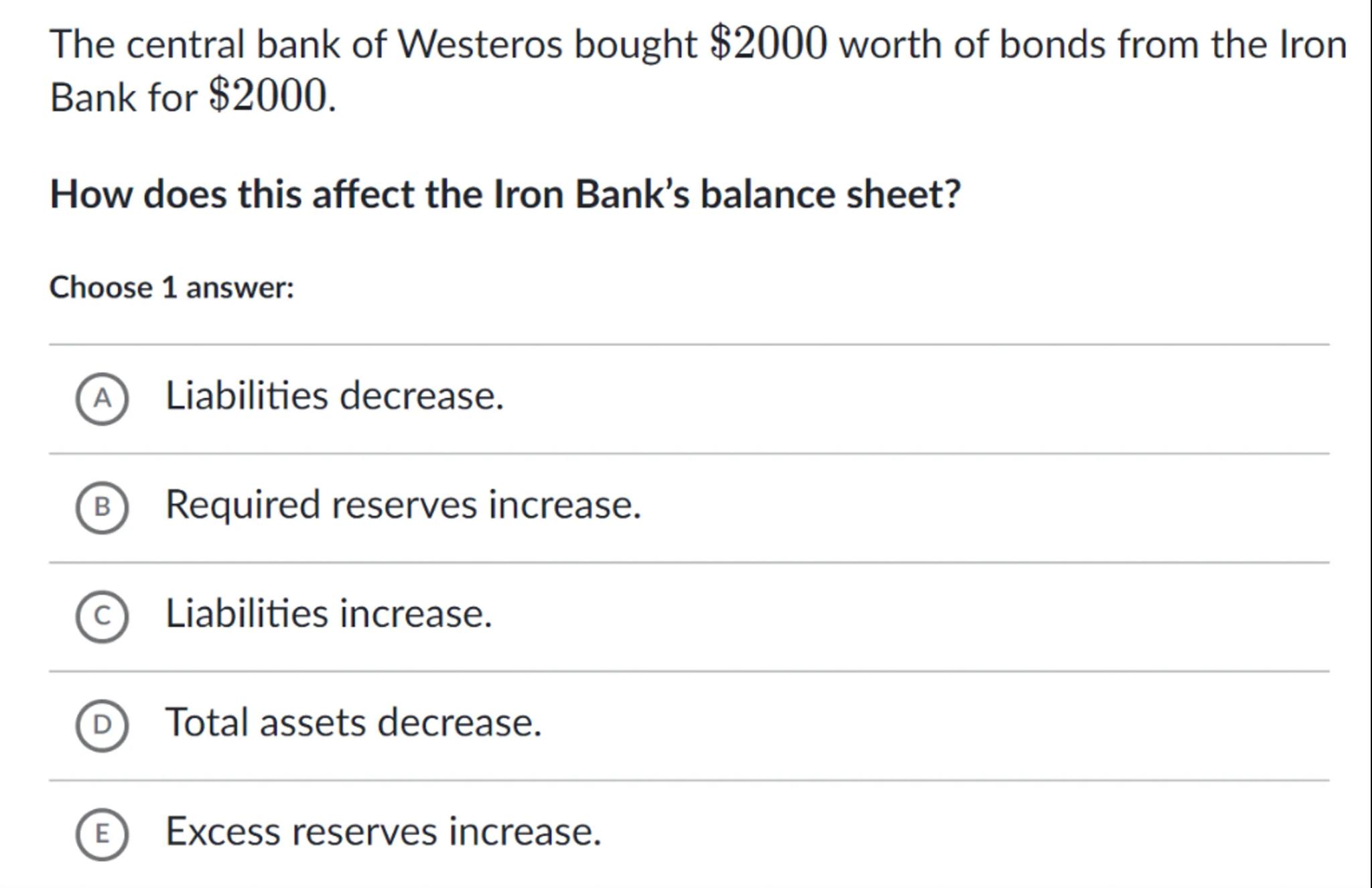 The central bank of Westeros bought worth of bonds from the Iron Bank for .