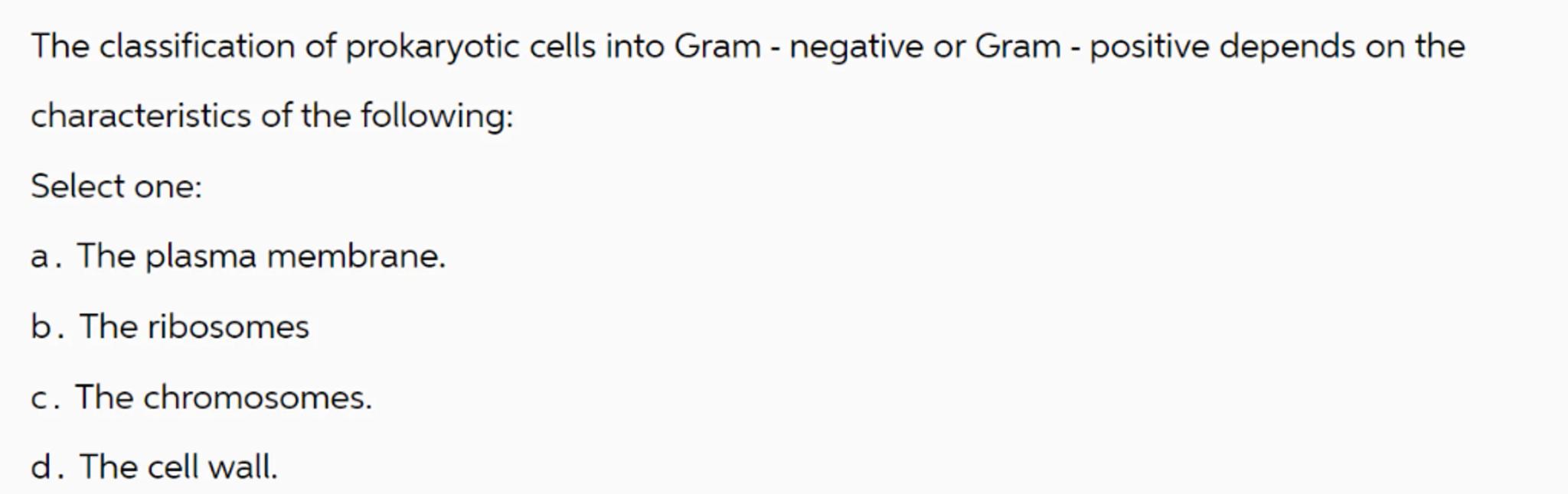 The classification of prokaryotic cells into Gram - negative or Gram - positive depends on the characteristics of the following: