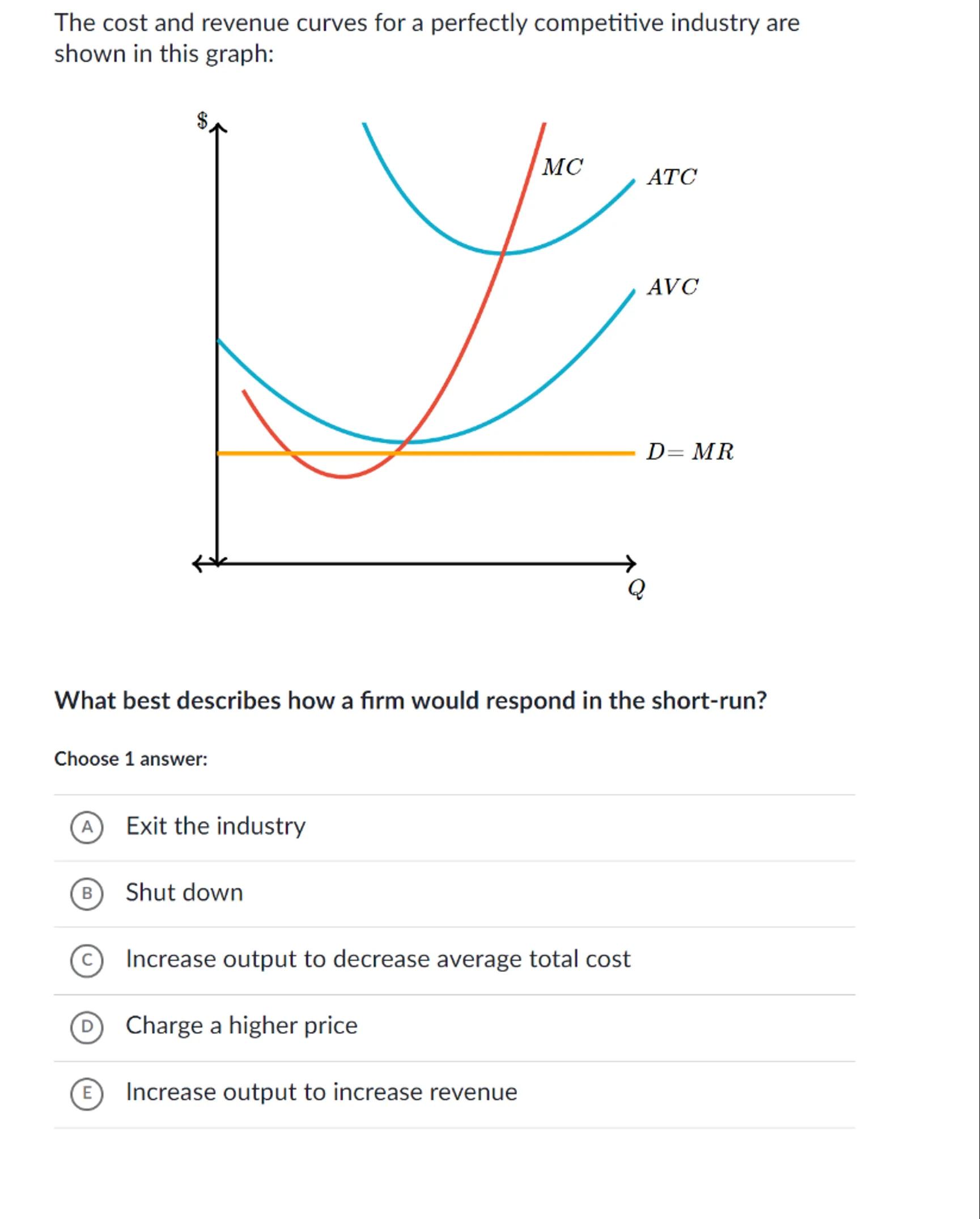 The cost and revenue curves for a perfectly competitive industry are shown in this graph: