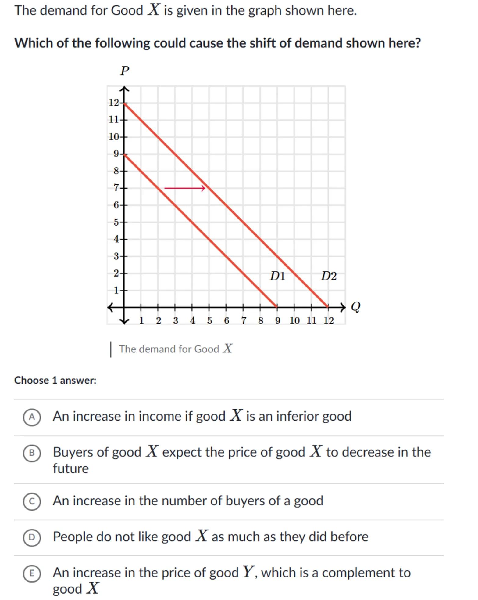 (c) An increase in the number of buyers of a good