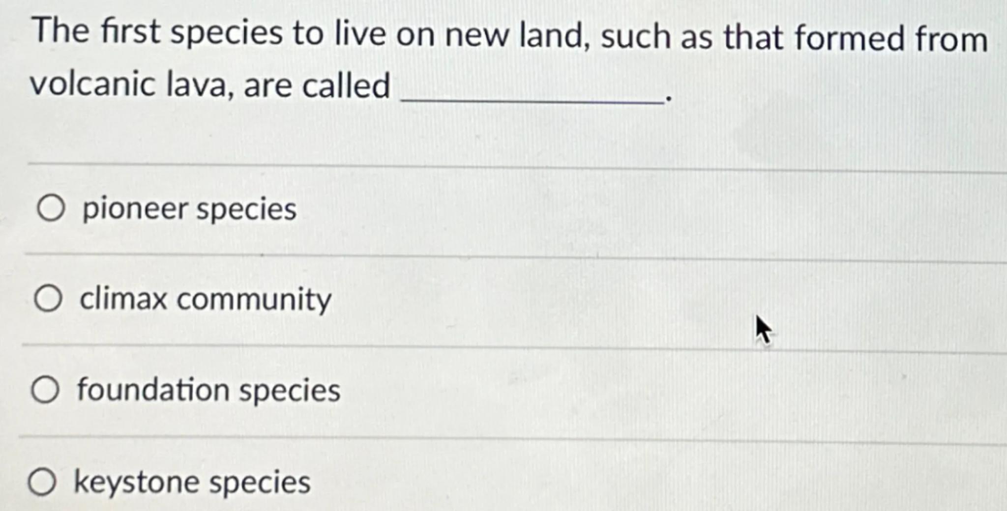 The first species to live on new land, such as that formed from volcanic lava, are called