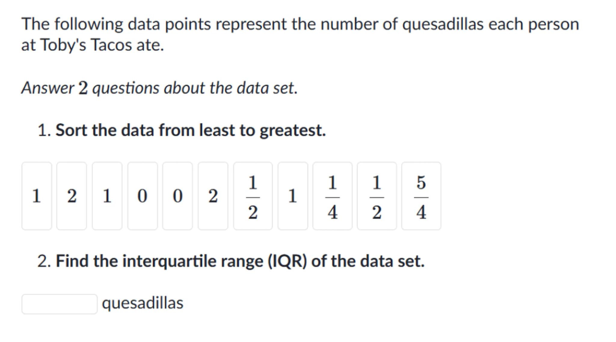 The following data points represent the number of quesadillas each person at Toby's Tacos ate.
