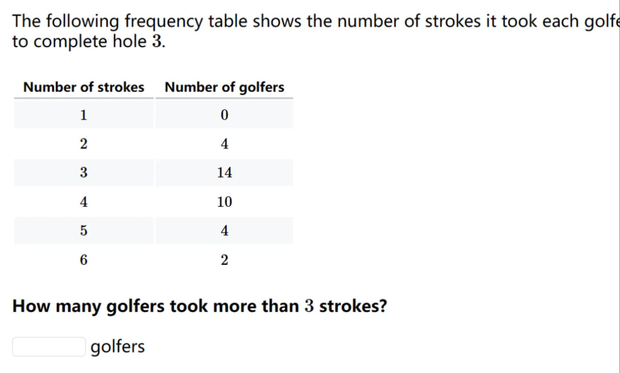 The following frequency table shows the number of strokes it took each golfe to complete hole 3.