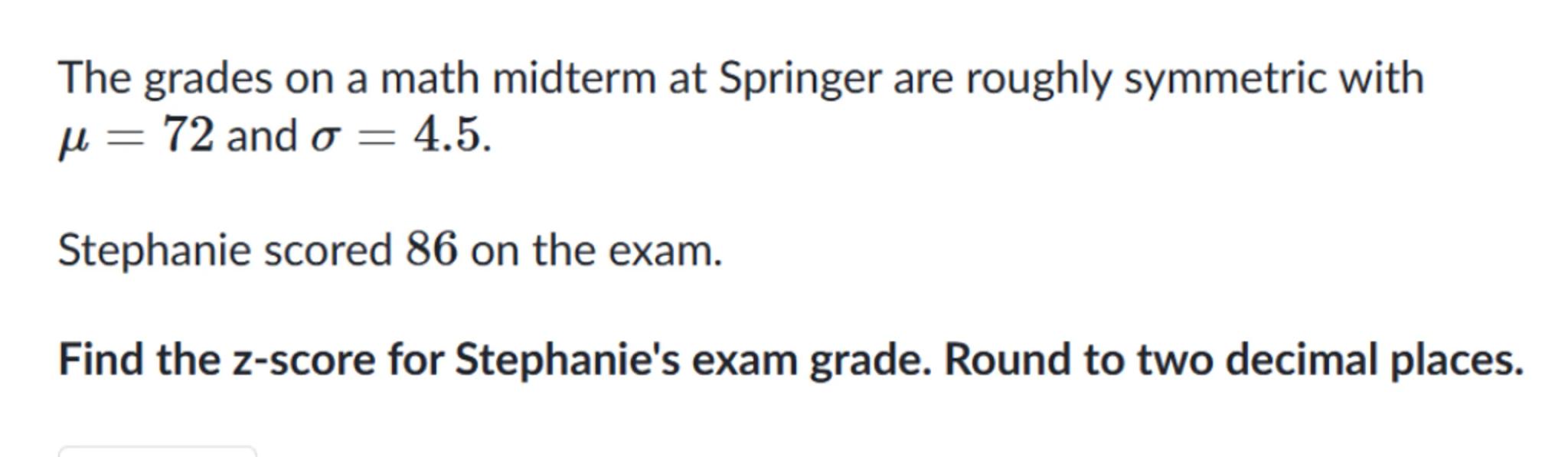 Find the z-score for Stephanie's exam grade. Round to two decimal places.